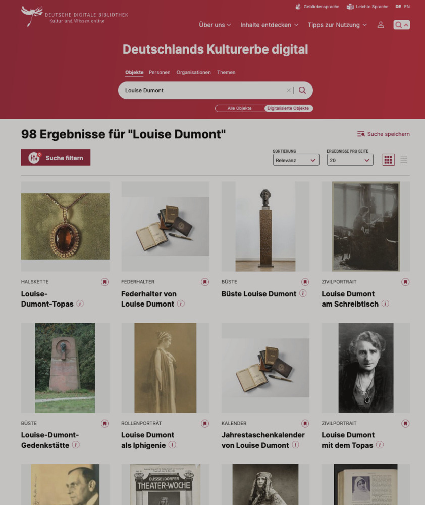 Viele Portale wie die Deutsche Digitale Bibliothek oder das Archivportal D nutzen die GND IDs für die Suchfunktion auf ihren Portalen in den Metadaten zu den Sammlungsobjekten, die an sie ausgeliefert wurden. Aber auch für die Aggregation unterschiedlicher Ressourcen zu einem Begriff, einer Person, einem Ort oder ähnliches und zeigen diese dann in ihrer Trefferliste oder in ihren Ausstellungsprojekten gebündelt an. Das erhöht die Sichtbarkeit einzelner Objekte und der Institutionen, die diese Digitalisate bereitgestellt haben.