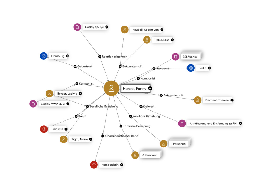 Der Wissensgraph visualisiert direkte und eingehende Verknüpfungen, während die Hierarchieansicht die Einbindung in die Thesaurusstruktur zeigt. Auch Orts- und Zeitbezüge können visuell gefiltert werden. Neben der klassischen Suche steht auch ein SPARQL-Endpoint zur Verfügung: https://sparql.dnb.de/